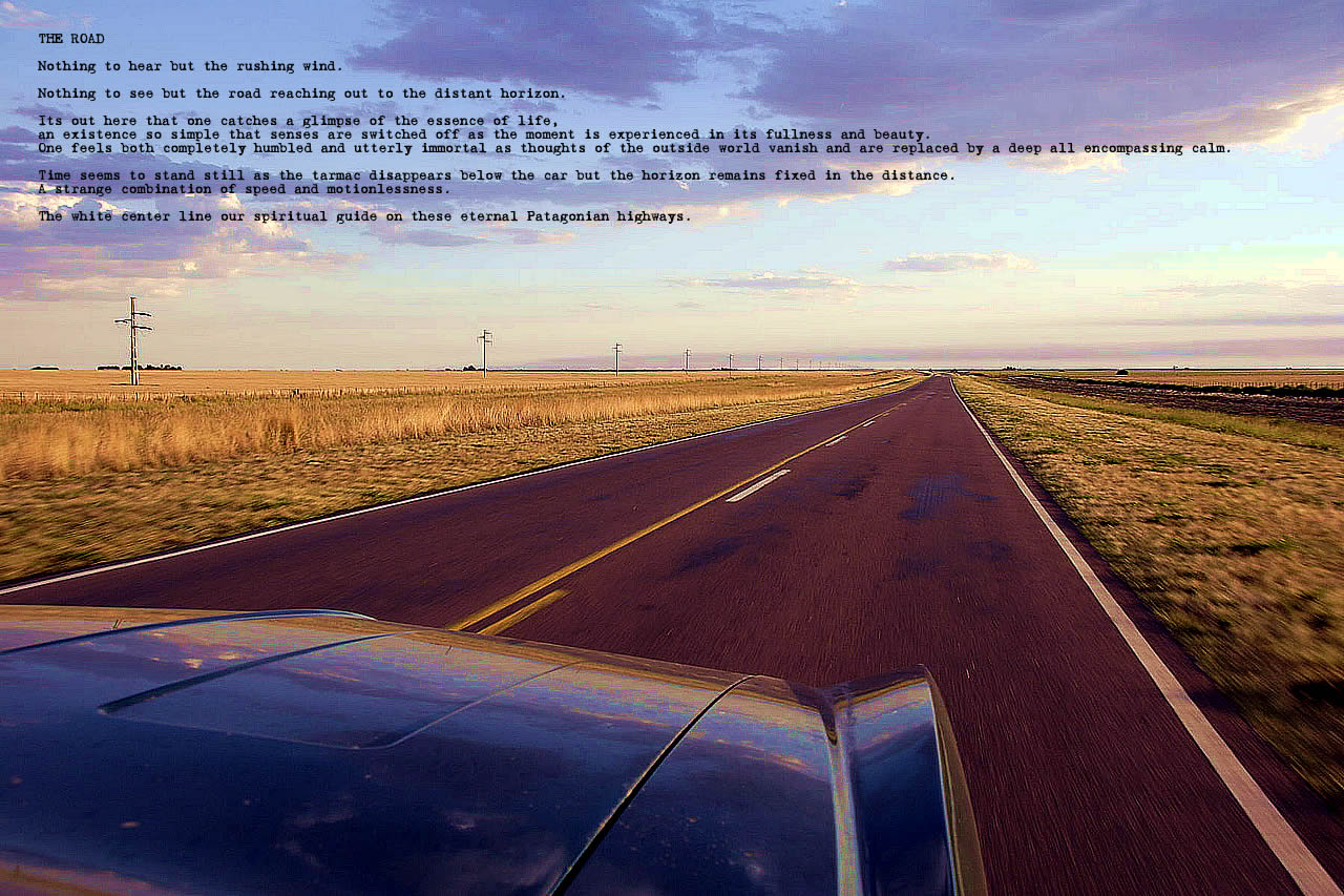Patagonian highways. The only sounds as we cruise along are the low hum of tyres and