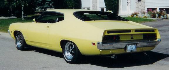 "Hi Mike it's Robert J Cuillerier from up north again (lol), Winter is just a few months away, but the Torino passion is still going strong!!! Here are some pictures of my buddy's (Andre Grenier) 1970 Torino "J" code Cobra. He is the original owner of this "legendary street bruiser". Power comes from a 429 SCJ backed up by a top loader 4 spd and 3.91 track lok rearend. Other options are factory tach, bucket seats, rear window louvers and magnum 500's. It just turned 20,000 miles and the only modifications are headers and 1971 style cobra on the grill and tail panel. He also has a glove box full of 13 second passes dating from 1970. Back in the early 70's he tried on slicks and a 457 Detroit locker, hiting the traps in the 12's. PS. A sign of it's race back ground is the tow bar under the front bumper!! Cool car!!! Keep up the great work. Always the best Torino site."