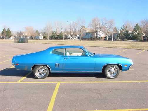 The following comes from Bruce Peckham of Aurora, Colorado. Bruce writes "Howdy Mike, Here are some pictures of my '70 Torino GT. It has a 351 Cleveland and C6. The resto-mod was done by Ivar Widgren of Strasburg, Colorado about 6 years ago. He designed the interior and it was done by a local upholstery shop. The paint is a late model Ford truck blue. Thanks for a great site and for the opportunity to see so many great Torinos.