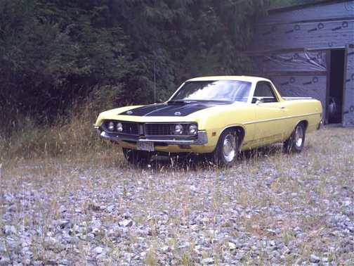 "Hi Mike, some pictures of my 70 Ranchero 500 it is very original (grille is incorrect-should be cobra style) and in very good shape-options include drag pack with close ratio 4 speed-3.91 t-loc, tinted windows, black vinyl with bench, am radio power brakes-no power steering. wheels are 15 inch off a boss mustang. i saw another one like it on e-bay (wagners classic cars) and the marti report says it is one of six built with this engine trans combo.