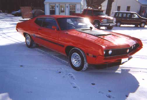 I received the following from Mark aka "DoctorWheels" of Whitman, MA. Mark writes "Here are the pics of my 70' GT Fastback, 42K miles, Texas car, 351 Cleveland, auto, A/C. I bought the car for a winter project, but couldn't stop when I got started. I went thru the car completely, but did not need a frame off, it was like new (undercarriage). The rear wing is off an Olds 442 and I was lucky enough to find rear sport slats. If anybody has questions my email is doctorwheels @aol.com. My wife and boys helped. I found the other car on the side of the road with the doors flapping and away I went. 1985 LTD LX 5.0 HO stock, front and rear sway bars, posi-trac rear end. This car has factory tachometer and center console with sport seats. The car really moves and is a blast to drive. I know I went a little crazy on the paint, but I like it. The blue is 1995 Ford. Thanks Mark "DoctorWheels".