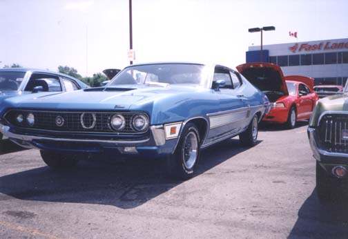 All I can tell you (owner unknown) is it is a GT car it has a 351 2 bbl engine it's not modified - all stock, blue interior and bench seat, single exhaust, painted medium metalic blue code Q and it has a horse shoe on the grill good luck I guess. Steve"