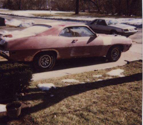 I received this email from Steve Randazzo of Dearborn Michigan, my neck of the woods. Steve writes "Hello from Dearborn Mi. Here is a Picture of my 1971 Torino 500 - Purchased for $1000 in June 1998 found in Marine City Michigan under a Big Oak Tree! The first 2 Pictures show the shape of the car during the restoration 2 years ago. The third shows the Flinstone Version of this car (The Floor) Through this whole ordeal the Floor Boards from the Firewall Back has Brand New Sheet Metal and Carpeting. The Car has been Modified to a street Machine over the last 2 years. Original Engine was 302 with a C4 trans. In early 1999 I purchased a 1969 429 Thunderjet Engine and then decided to add my own personality to this Classic. As of June 2000 The Torino 500 now Houses a 429 CI - With a C6 Automatic Trans - Headers - B&M Mega Ratchet Shifter - Mickey Thompson Cheater slicks - W/Centerline Rims (Rear Only) and Front and Rear Spoilers amoung other items. And I must say ... If it wasnt for the understanding of my wife this dream would not have been possible! especially with countless hours of work and living in the garage for 2 years! Hope you enjoy looking at this as much as i do driving it. And a bit of advice for all those that wnat to go from a Small Block to a Big Block $$$ + Time + Patience + Money = Reward feel free to email any questions Thanks - Steve Randazzo srandazzo@mediaone.net"