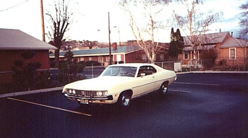 The following came from Tim Mullanix of Pendleton, Oregon. Tim writes "Hello my name is Tim Mullanix from Pendleton, Oregon. I got a 71 Torino 500 that I've owned for 4 years and its all original except for the chrome wheels I bought for it. It cost me $900 in 97 and I purchased it from a old gramma. It has 126,000 miles on it now and is gonna get a rebuild next month. When i got it in 97 it had 105000 miles on it. Only options it has is big ventilated rear drums and power steering, and the vent system. It's my baby I want a GT too. I hope to buy in the future. Mike your page is torinorific and awesome, I love it. I haven't found one better . My car, 1971 torino 500 351 C 2 valve all stock under hood still produces 240 hp, c6 cruise o matic, color vanilla cream, is pretty straight. I think that the 500s are rarer than the GT's u see more GT's for sale than the 500's but any 2 door 70 71 Torino is getting rarer and rarer by the year.."