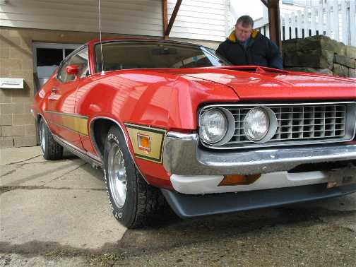 The following comes from Tommy Dowling of Long Island, New York. Tommy just picked up this car on March7, 2003 in NW Pennsylvania. Tommy writes "Hi Mike, photo's of the Torino I picked up Saturday. Not 10 minutes from where we picked it up we stopped for gas for our thirsty flat bed. A individual approached us, and whipped out his wallet. He showed us pics of his 1970 GT! Within a few minutes the car had a crowd of at least 10 people standing around it, checking it out. My thanks to the "stranger" whom owned that 70 GT. He showed me how to open the rear louvers so I could clean under them. I feel like a child on Christmas eve! I was looking for a car like this a few years ago when I found a 1964 Galaxie Fastback that was in pretty darn amazing shape. So I enjoyed that call till the curse of "divorce" stole it from me. Perhaps this Torino is a bit of payback? <wink> Hopefully I will become an active participant in the Forum. As a ASE Certified master Tech sometimes it's hard to find the "Urge" so to speak to get motivated. Thanks again for Providing the Torino Guys a Home. Tommy